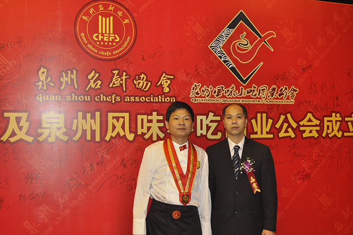 泉州名厨协会高级顾问余锡强先生与泉州市旅游局副局长陈庆风先生合影